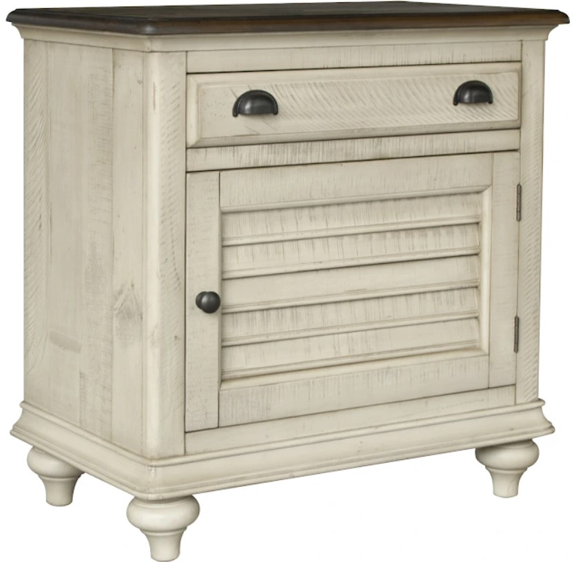 Hand-built with a one-of-a-kind design, the Brockton Master Door Nightstand brings versatility and style to your bedside decor. Its slightly distressed two-tone finish and hand-placed shutters on the door front, highlight the meticulous craftsmanship seen throughout. Designed with ample storage space, you will find a felt-lined top drawer for smaller items.Read More