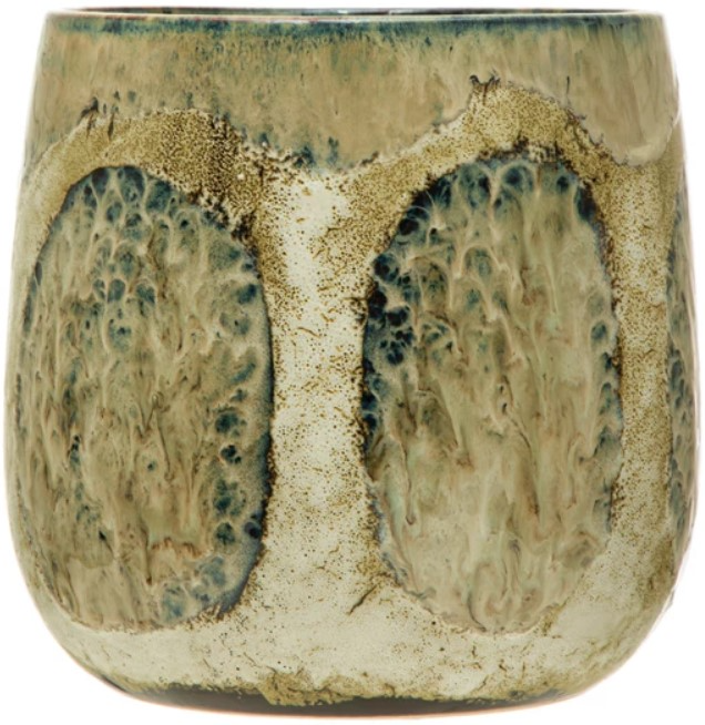Whether placed on a windowsill, shelf, table, or countertop, this multicolor stoneware planter with reactive glaze adds personality and flair to any home