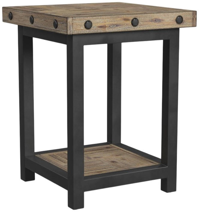 Industrial construction inspired by vintage workbench design. Drawing inspiration from vintage workbenches, the Carpenter chairside table is constructed of solid wood planks, distressed for a reclaimed look, and hand-worked metal frames. Exposed bolt heads underscore the aged, oiled finish that resembles an industrial steel framework.Read More