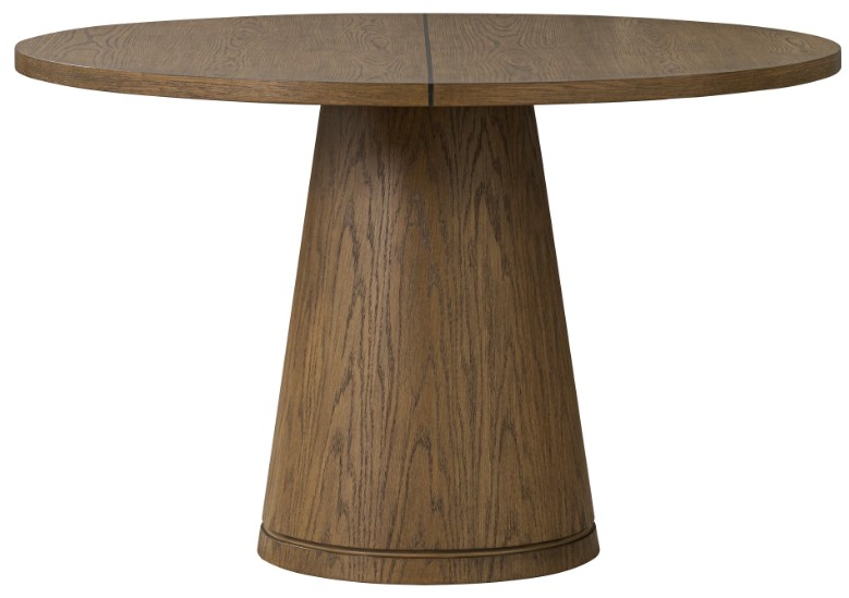 Constructed of rubberwood solids and white oak veneers in a warm, Sierra Brown finish with a center metal inlay