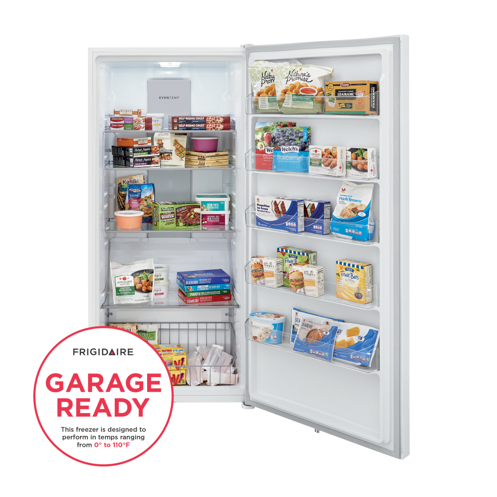 This Frigidaire 20 cubic foot upright freezer includes a superior tight seal that locks in cold air, keeping food frozen for two days if there is a power outage, and the EvenTemp™ Cooling System, with a variable speed compressor that constantly circulates cold air throughout the freezer with smart sensing technology that adjusts air flow to maintain a uniform temperature.Read More