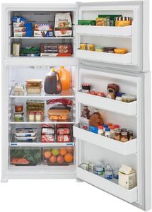 The Frigidaire 20 cubic foot top freezer refrigerator fits in the same sized cutout as a traditional 18 cu. ft. model. This refrigerator features the EvenTemp™ Cooling System, precise temperature control which keeps food at one ideal temperature. Spacious interior storage options include generous door bins and a full-width glass freezer shelves.