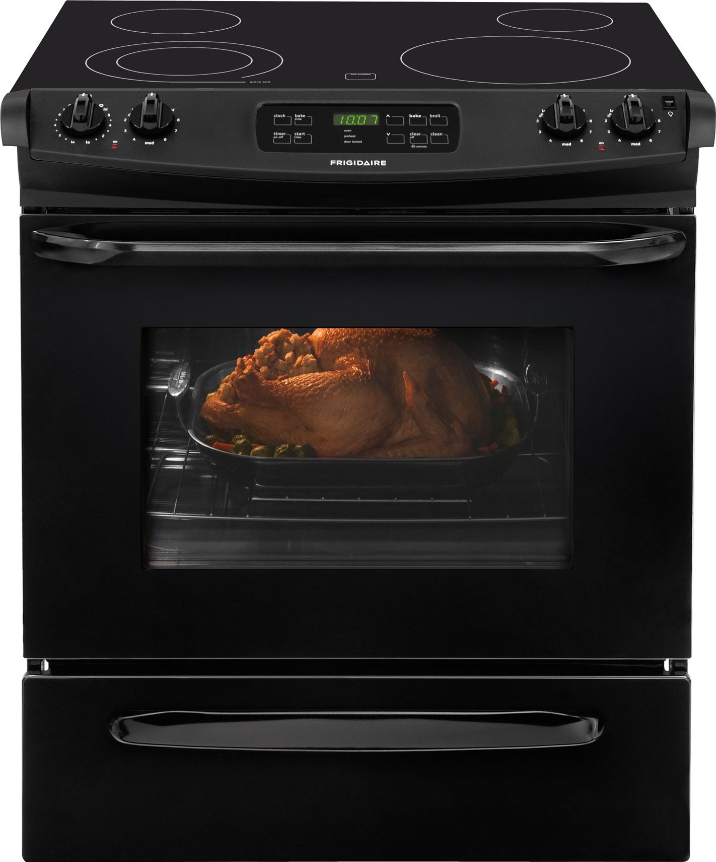 Frigidaire® 30" Slide In Electric Range-Black with 4.2 cu. ft. capacity, Ready-Select controls, delay bake, auto shut-off and ADA CompliantRead More