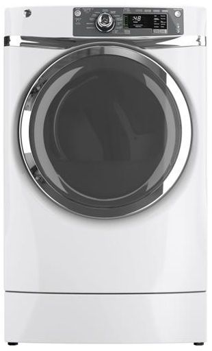 GE® RightHeight™ Design Front Load Gas Dryer-White with 8.3 cu. ft. capacity, steam, dual thermistors and removable up front lint filterRead More