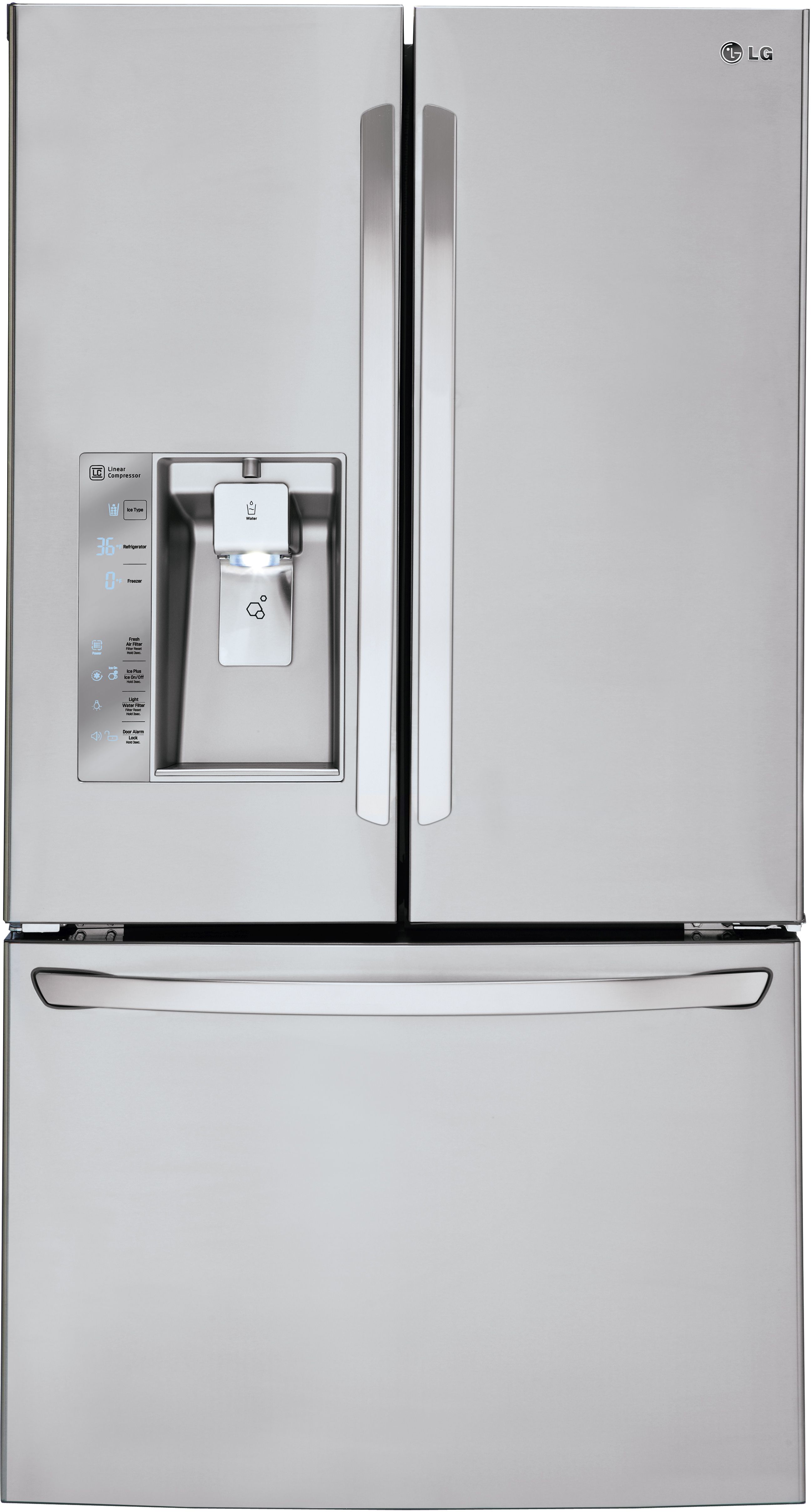 This super-capacity 3 door French door refrigerator features a 30 cu. ft. capacity, door alarm, child lock, cantilevered shelves, 8 temperature sensors, electronic/digital temperature controls and integrated ice and water dispenser.Read More