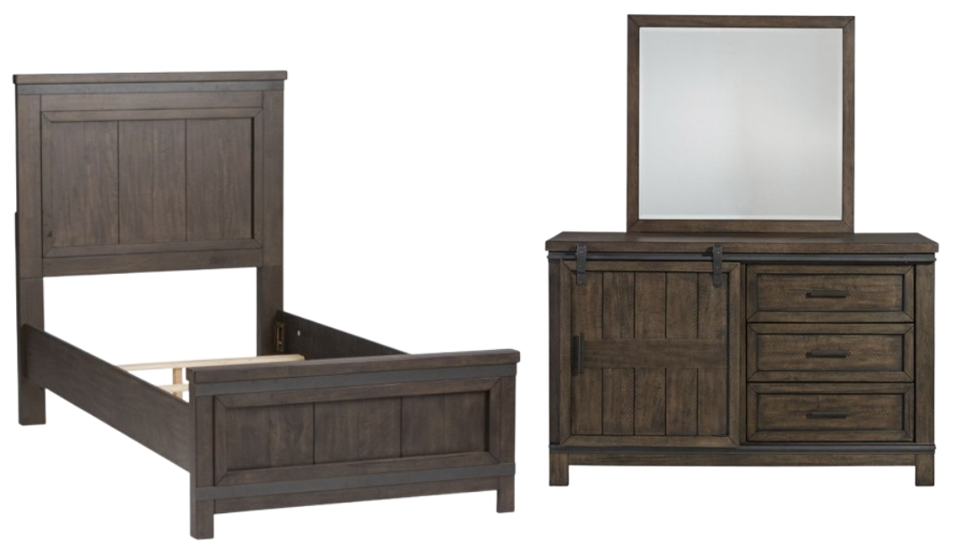 Elevate your home with the Thornwood Hills twin panel bed, dresser, and mirror. Crafted of rubberwood solids with mango veneers. Add this unique bedroom set to your traditional style home.Read More