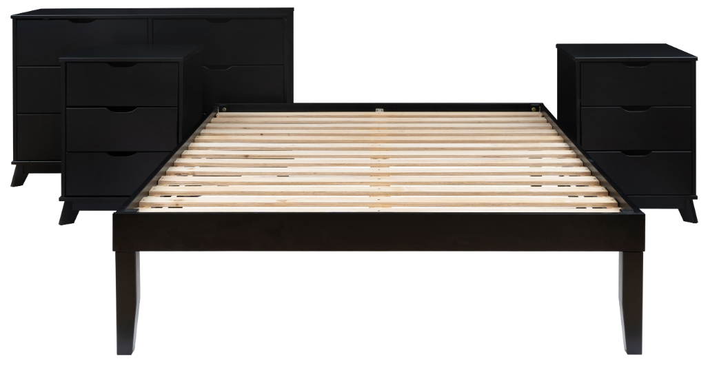 Elevate your bedroom with the perfect blend of style and function! This chic full size platform bed, dresser and nightstand set brings a touch of contemporary sophistication to your space while keeping it warm and inviting. Crafted from solid pine wood and finished in a rich black hue, it’s as durable as it is beautiful.Read More