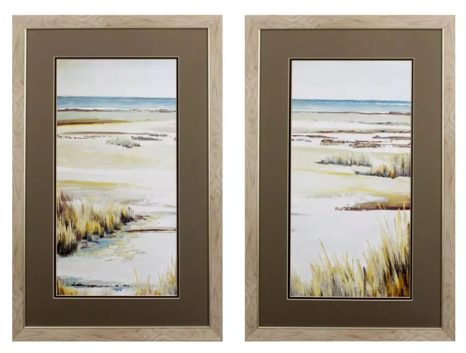 A set of two landscape panel prints that are double matted, framed under glass, and paired with a bronze and silver frame. This framed art set is a piece that will be a wonderful addition to any room and a perfect fit for any decor.Read More