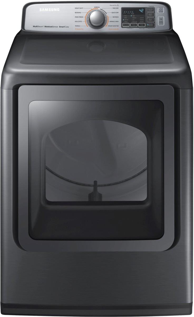 Samsung 7.4 Cu. Ft. Platinum Front Load Gas Dryer with Smart Care, Multi-Steam Technology and sensor dry.Read More