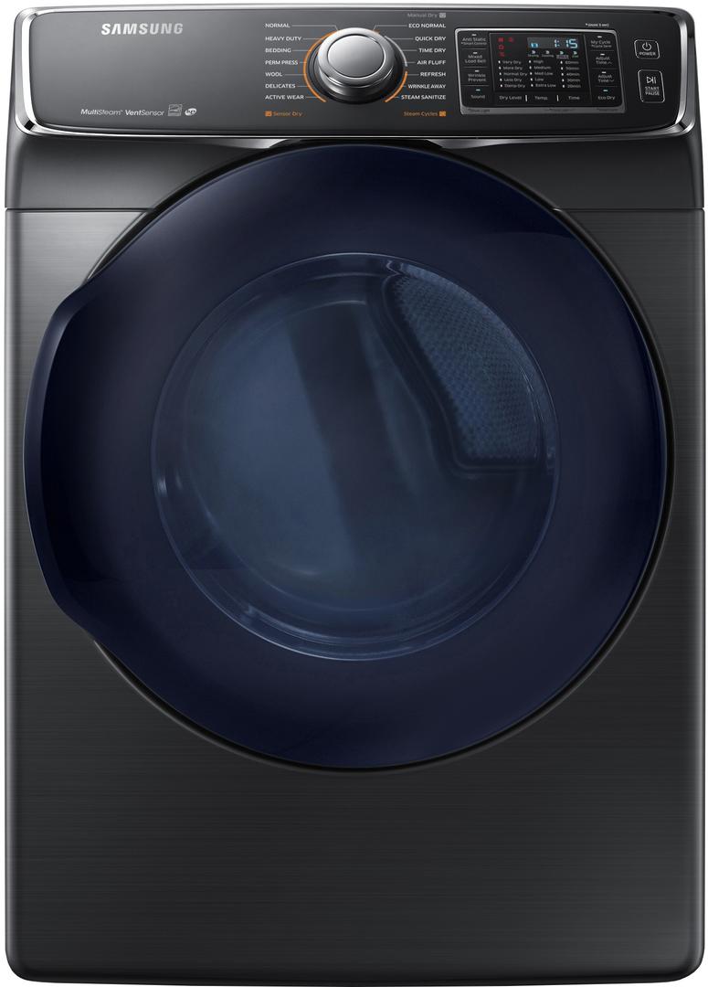 Samsung 7.5 Cu. Ft. Fingerprint Resistant Black Stainless Steel Front Load Gas Dryer with Smart Care, vent sensor and stainless steel drum.Read More