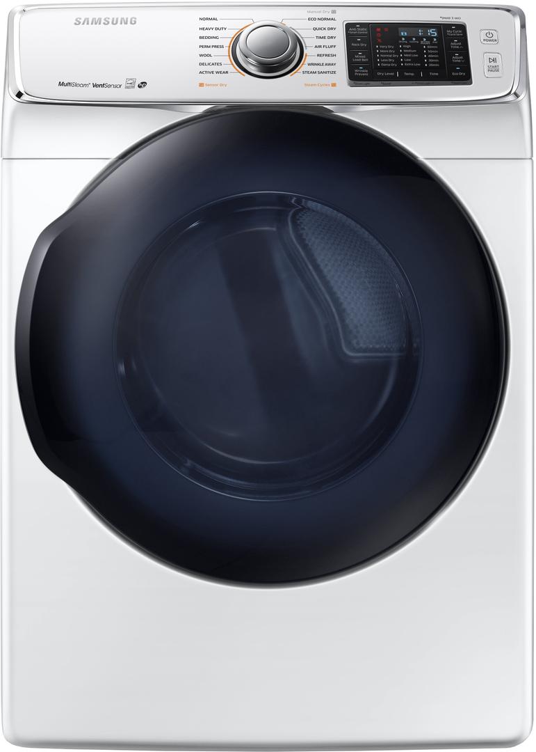 Samsung 7.5 Cu. Ft. White Front Load Gas Dryer with Smart Care, vent sensor and multi-steam technology.Read More